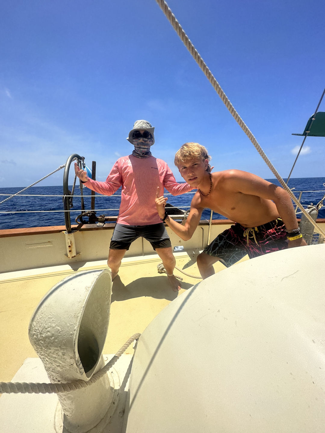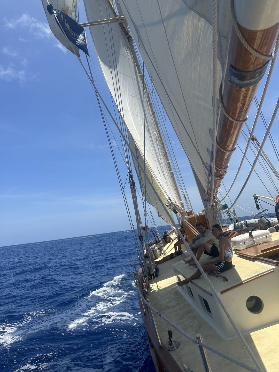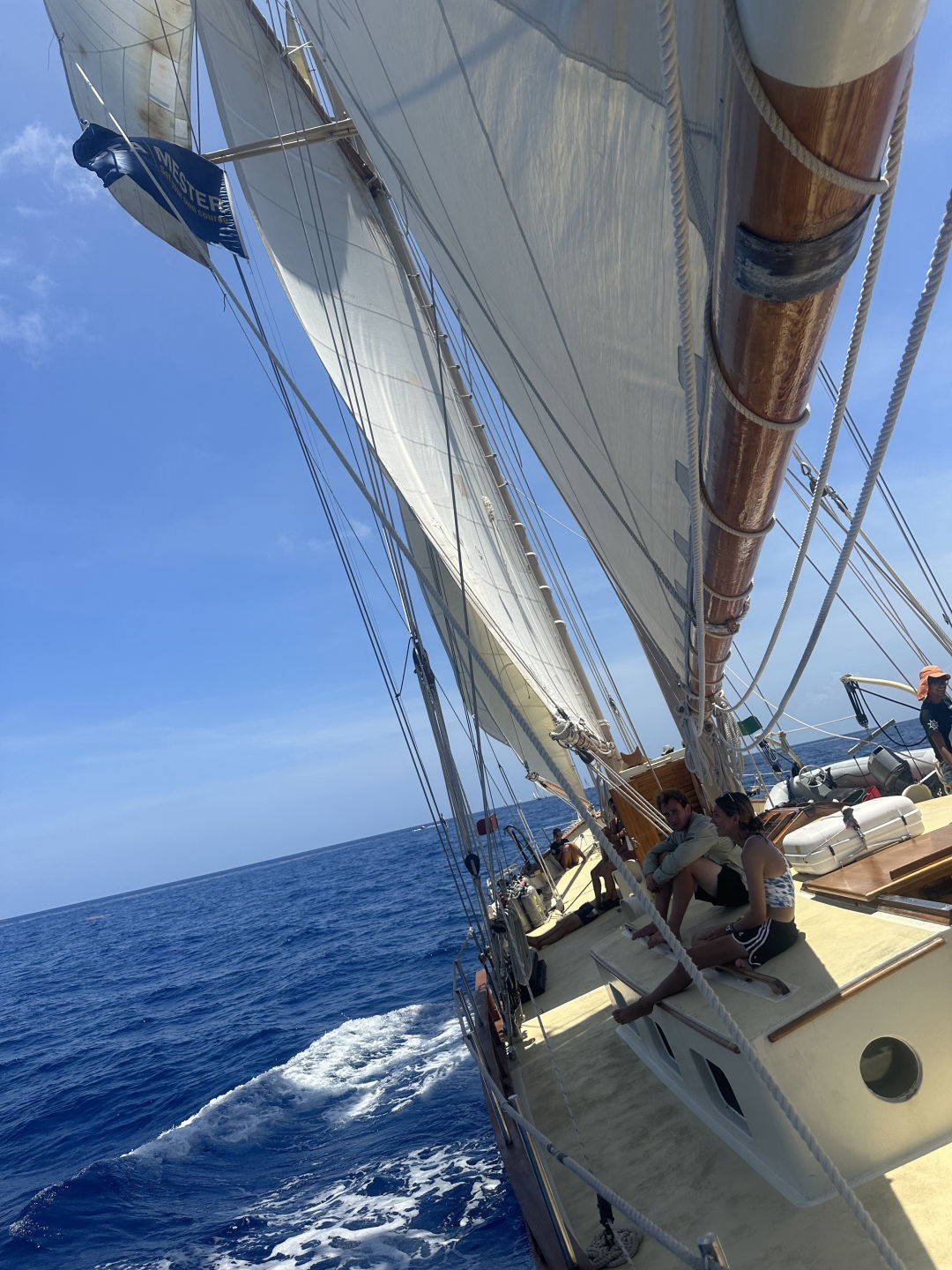 Today is day 78, meaning it is my last blog. The morning started off at a normal 7 am wake up. Coffee was brewing, and smiles were shared. Nick wanted us to go straight into the race with confidence and willingness. Around 7:30 am, the crew got Ocean Star off the dock and ready to sail our last day in the regatta. The anchor chains were full of sluggish muck that had been sitting at the bottom of the bay. It got everywhere. But we got that off the decks very fast because we are very good at what we do! The race started at 11:30 am. The wind was blowing from the southeast, which changed the course of the regatta, making it a bit shorter than usual. The sail lasted around 3 hours, and straight after, we participated in a boat parade. The harbor was super colorful, with many different flags from all kinds of places hanging from the main masts of other boats. We docked and got the anchor down at around 3:30 pm. We then washed the decks and went straight to the bathrooms to take fresh water showers! Soon after, we were briefed and had a wonderful dinner. Our last sail was picture-perfect, and being on the jib team with all of my friends was so much fun! I am very grateful to be on such a. beautiful schooner with such amazing people. Honorable mentions- My family, of course, Kennedys, Delducas, Sullivans, and the Leonettis. Signing out-Jack
