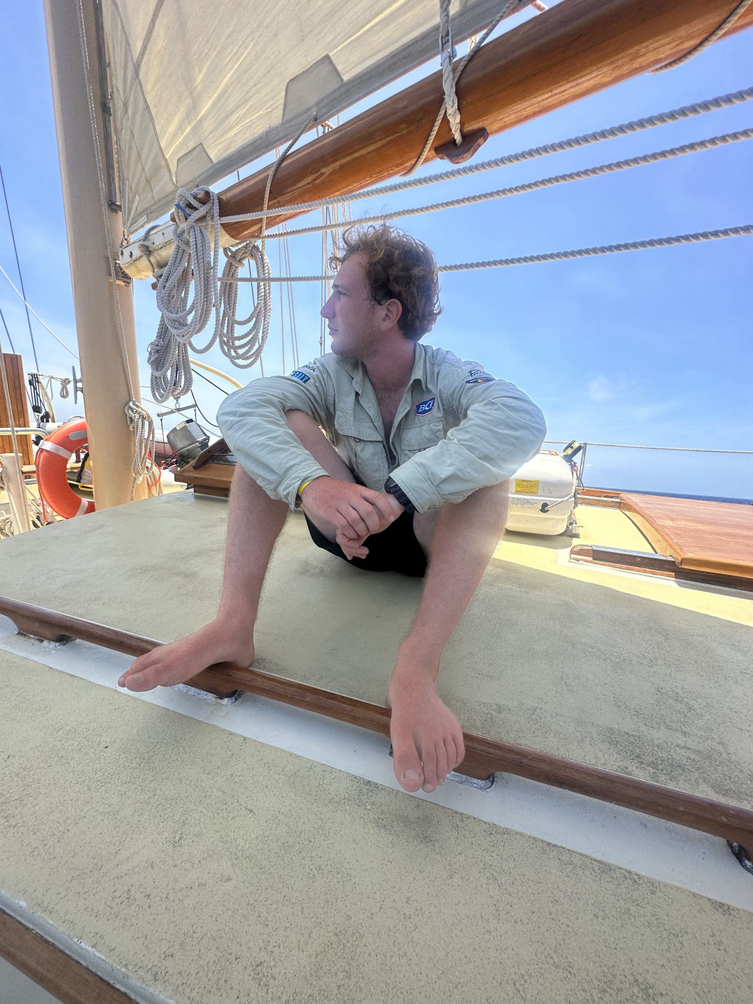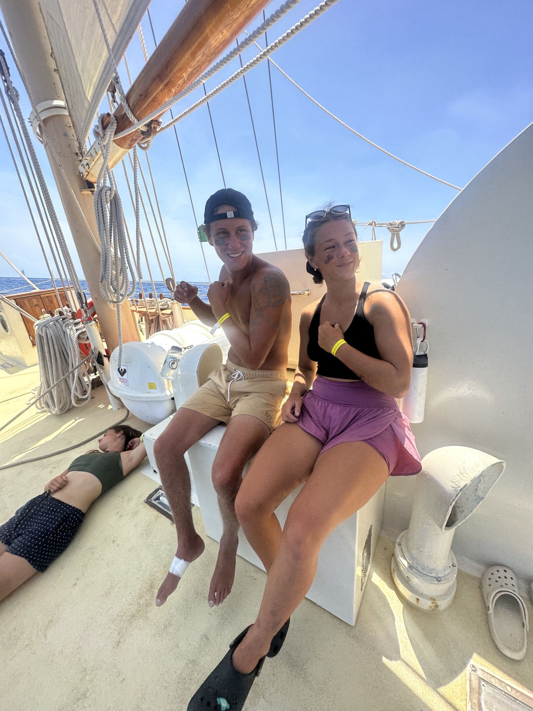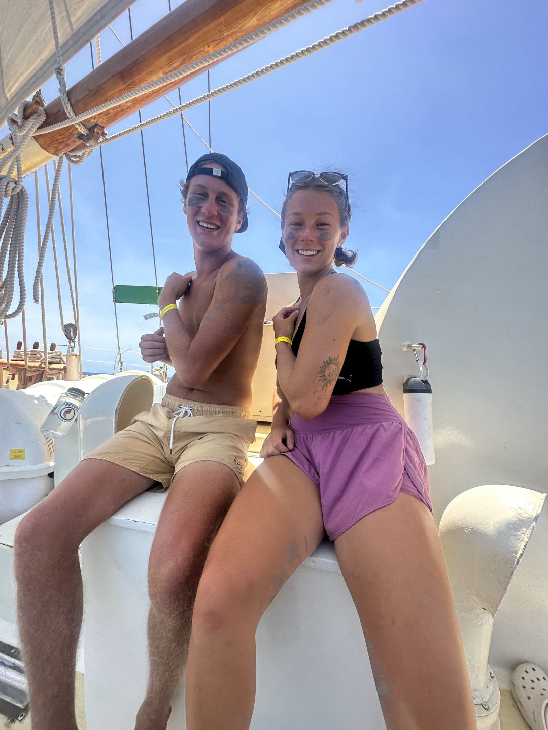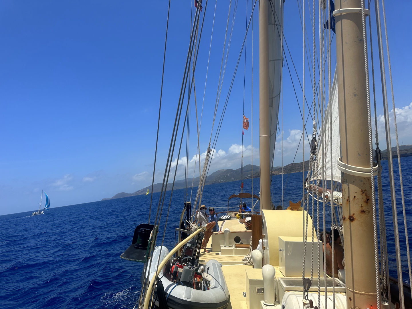 Today is day 78, meaning it is my last blog. The morning started off at a normal 7 am wake up. Coffee was brewing, and smiles were shared. Nick wanted us to go straight into the race with confidence and willingness. Around 7:30 am, the crew got Ocean Star off the dock and ready to sail our last day in the regatta. The anchor chains were full of sluggish muck that had been sitting at the bottom of the bay. It got everywhere. But we got that off the decks very fast because we are very good at what we do! The race started at 11:30 am. The wind was blowing from the southeast, which changed the course of the regatta, making it a bit shorter than usual. The sail lasted around 3 hours, and straight after, we participated in a boat parade. The harbor was super colorful, with many different flags from all kinds of places hanging from the main masts of other boats. We docked and got the anchor down at around 3:30 pm. We then washed the decks and went straight to the bathrooms to take fresh water showers! Soon after, we were briefed and had a wonderful dinner. Our last sail was picture-perfect, and being on the jib team with all of my friends was so much fun! I am very grateful to be on such a. beautiful schooner with such amazing people. Honorable mentions- My family, of course, Kennedys, Delducas, Sullivans, and the Leonettis. Signing out-Jack