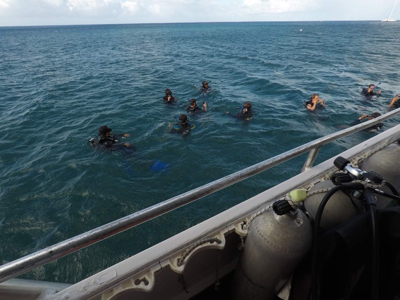 On our first full day in Dominica, we spent our morning scuba diving. We woke up early at 6:45 in order to fit in as much as possible! With the help of a local dive shop, we traveled out to Witches’ Point. Dominica is full of volcanic activity, past and present, and both of our dives today demonstrated that. Witches’ Point is the side of a volcanic crater that drops from the shoreline to 1900m in an incredibly short amount of time. Our advanced open water candidates made use of this in order to complete their Deep Dive, and we traveled down to 80 feet below sea level. For our second dive, we traveled to Champagne Reef. Hydrothermal vents are very close to the surface here, and Champagne Reef earns its name from the small bubbles that escape around those vents. While the second dive was much shallower than the first, it allowed us to complete our Fish ID Dive, leaving us with only two more until our certification is complete! Both reefs were extremely healthy and boasted a huge number of both fish and species for us to discover. Afterward, we came back to the boat for lunch before heading out to explore Roseau, the capital of Dominica. While some students chose to check out the local KFC or grab some ice cream, most spent their time exploring the local streets, markets, and stores. Afterward, we returned to Argo for burgers and a surprise from Tina and the chefs – Churros! Tonight, we have SLS.