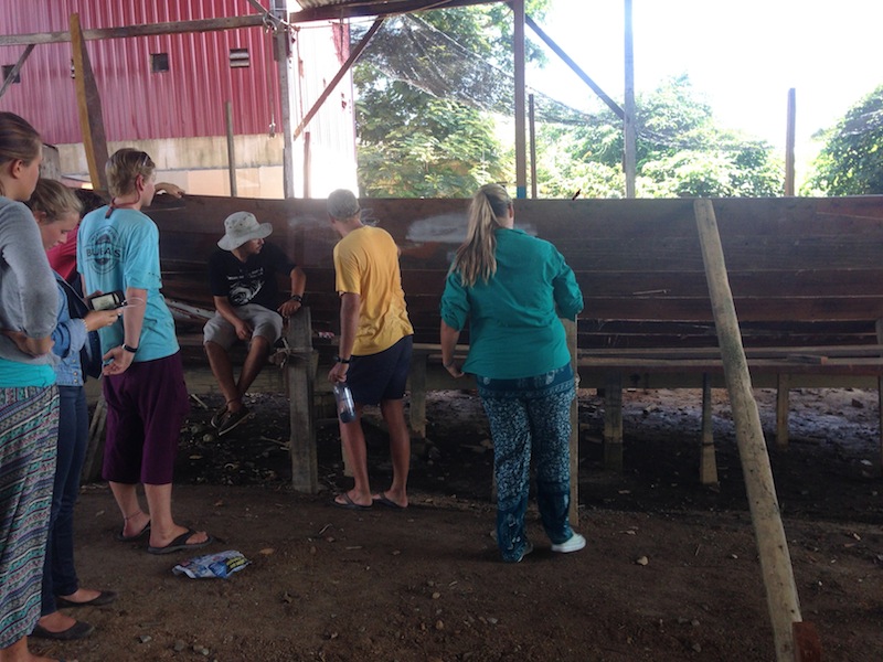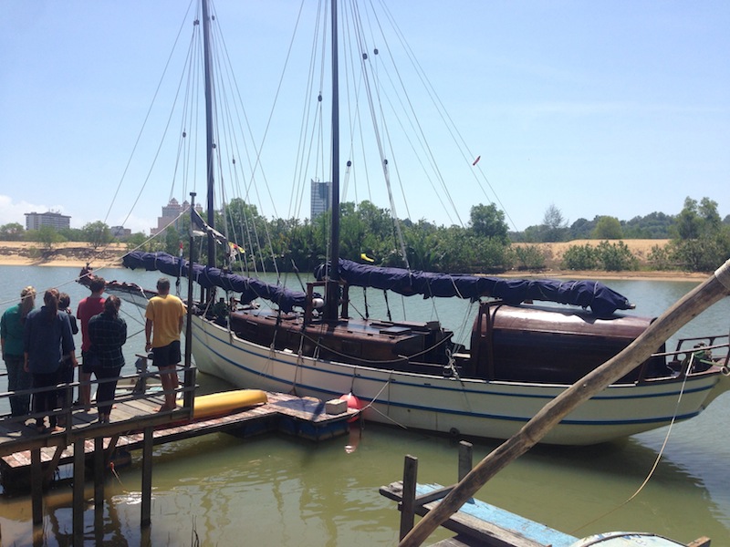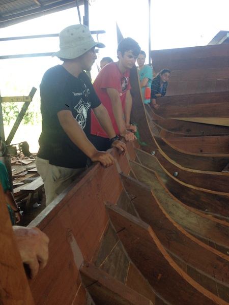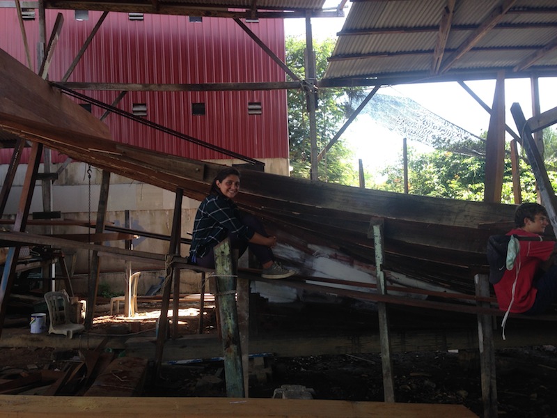 Today in Terengganu, we visited a couple of small shipyards near the Marina. The shipyards we went to were building wooden fishing boats, just like the ones we had been seeing and maneuvering around during our time in Southeast Asia. We learned a lot about how the boats are built and put together and what materials are used. Forrest, who is a wealth of knowledge on wooden boat building, is often found in the saloon with his Nook reading the latest edition of Wooden Boat magazine. He talked about how each piece of lumber is cut and then heated or soaked so that it can be formed into the correct shape to form the curved hull of the boat. After the educational experience, we headed back to the boat under the blisteringly hot sun, desperate for some refreshing H2O, shade, and lunch. After lunch, we head out to the Marina for a free afternoon. Some of us took a very chlorinated dip in the pool and then relaxed at the cafe. A free afternoon while free did not keep us from getting work done. Free time very much, so include getting online and doing some research or finishing some homework (or boat work, if you will) for classes.