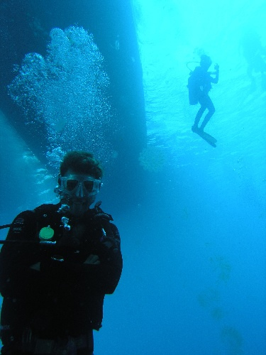 Today was one of the most enjoyable days in Egypt yet. This morning the majority of us went on a dive boat for the day, while the rest enjoyed what can only be described as the Egyptian version of Cancun. On the shuttle bus to the dive boat, we passed a KFC, Pizza Hut, TGI Fridays, and a Hard Rock Caf all in a row near the waterfront. This place was definitely your Egyptian dive town. Our first dive was definitely a shock to the system. Short girlish screams were heard after we all surfaced from the initial plunge. Even with two wetsuits and booties, I was shivering within fifteen minutes into the dive. Oh, how I long for Thai 85 degree water. We were served an awesome lunch on board and served hot tea and coffee upon exiting both the morning and afternoon dives. The coral was stunning, the service great, and a full day of laughter mixed with chattering teeth will not be soon forgotten.