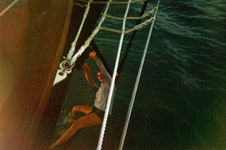 The struggles of climbing the fo’c’s’ le ladder with things in your hands