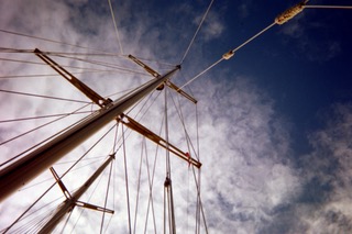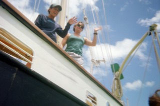Sweating the peak halyard with Dory