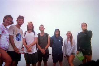 Kenz, Gus, Tye, Matt, Sash, Marin, and Dory at the top of a literal volcano (it was quite the hike)