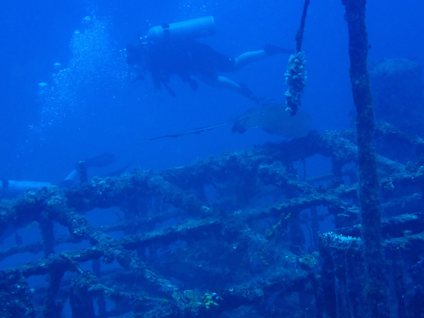 Cheeky little early breakfast. We were briefed at the coziest little dive shop on the waterfront. This was in preparation for our two deep wreck dives. Back-to-back wreck dives really put all of our divers to the test. We all kitted up and backrolled into the water below. The first dive was absolutely mental and consisted of plethoras of fish, corals, rays, lobsters, and even claims of a shark in and throughout the wrecked ship. It’s always such a joy to see everybody get excited about something they see and attempt to frantically signal to their buddy or the next closest person. Words fail to describe the feeling of being completely entranced by a marine interaction. It’s really given me a greater appreciation for slowing down and taking my time. A highlight of my dive was ascending up over the edge of the wreck and seeing a goatfish just munchin away on what seemed to be nothing. But even if it wasn’t food, he still looked so content. In between the dives, we spent time sunbathing and petting Smokey, the dog. This led to, of course, to another beautiful dive. Once we got back, we completed our last academic exam and fish ID quiz. It’s kind of unreal to think we just finished a semester of work while sailing around the Caribbean. We were then lured into the salon and given a false sense of security as a distraction for our rescue class. We all responded according to our intensive training, starting off strong by throwing an untethered rescue ring into the water. Naturally, my rescue debut started with saving the life ring before helping save two injured divers. Once tasks were delegated, it went smoothly. So smoothly that you could say we passed our first rescue scene. Overall, pretty chill day.
