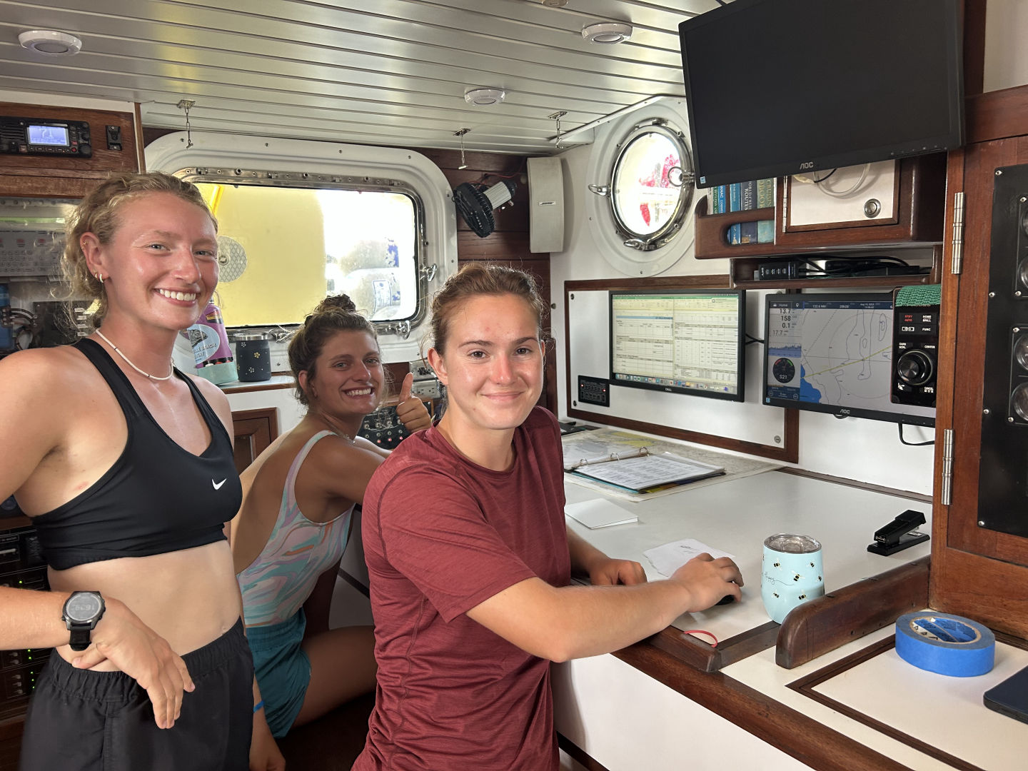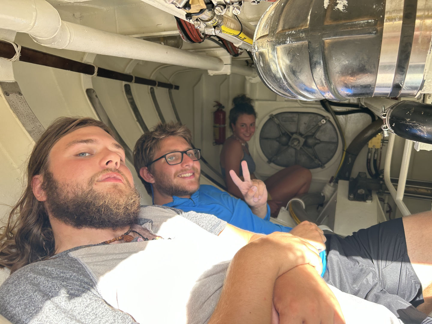 After a lunch of coconut noodles, we started messy boat appreciation. And messy it was. Normally, one wouldn’t think of getting something messy when they are trying to clean, but Argo is not normal. The entire afternoon was dedicated to removing and cleaning everything out of the nooks and crannies of the boat, including but not limited to water, hair, dirt, onion peels, more hair, and a fully dissembled toilet. The laz, anchor locker, and bilges were all the battlegrounds that tested a good many veterans. Many people found their secret talent as a contortionist as they wiggled and squirmed into even the smallest holes to clean. Leo stated a quote that was shared by many of the bilge cleaners: “I am not the same person I was after coming out of that bilge.” But despite the sweaty, dirty, and cramped situation, everyone managed to have fun and laugh. After we cleared out everything that was in the hull of the boat and cleaned it, we proceeded to repack it, forcing everything back into its place. Dinner was a tasty pasta bolognese, and after a small hand and knee drum solo, everyone got back to work preparing for our departure to the Italian mainland tomorrow.