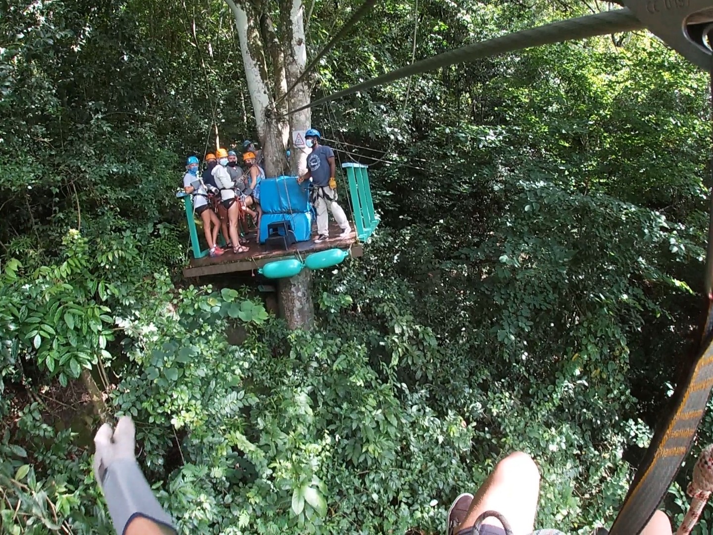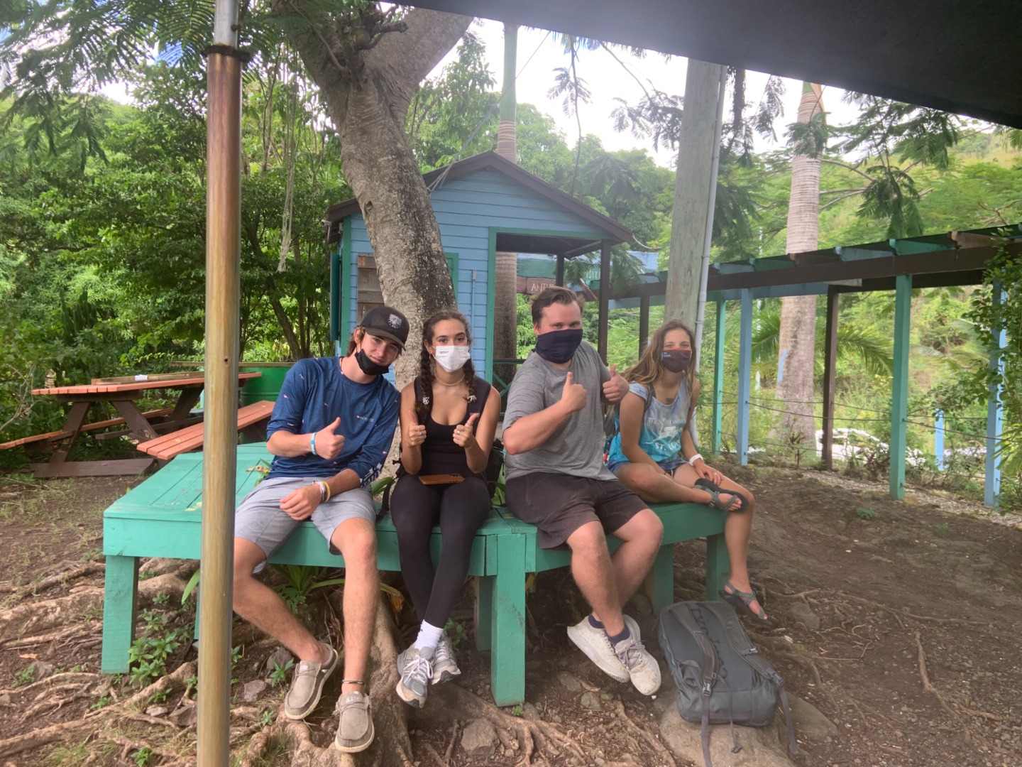 Yet another morning was greeted with a smile as I realized the majority of the crew was already up and awake. As time went on, it seems waking up earlier and earlier has become an enjoyable occurrence for a large portion of the group. The salon was filled with the songs of Neil Young and the Red Hot Chili Peppers in order to get the minority out of bed in a relaxing easy fashion, before ascending above deck for Sam’s signature breakfast, delicious migas. I was informed of the day’s plans, and overwhelming excitement overtook me for multiple reasons. I was told we would be ziplining… great, but also that our final test of the semester would be held today, concluding all school work for the remainder of our time here… better. We concluded our marine biology final after breakfast cleanup, and although we still have to present our group projects tonight after dinner, all testing assessments and classes have concluded. After packing our lunches into Tupperware for the day, we set off into the taxis headed for the Antigua Zip Lining Action Park. Zooming through the beautiful lush mountains at exciting speeds is an experience none of us will soon forget. After making it through the ziplining course, we arrived at the ropes course, where the guide informed us on how to safely pass from obstacle to obstacle before making a horrible mistake which was telling us it was safe and fun to try and knock each other off. The second the first two people stepped off the platform, the anarchy began. Tate was intensely jumping up and down on the bouncy cables while Maxime held on for dear life. Sam was screaming at Quinn to stop whipping the support rope out of his hands while Alexis’ entire body was swinging completely off of any structure. Thankfully the harness’ did its job well. Throughout all the chaos, you could always hear the laughter echoing and recognize the smiles on everyone’s face. We arrived back in the marina at around 3 pm, where we were given free time to walk around and explore the shops and restaurants in the area. Yet again, people made exciting purchases, mainly souvenirs and mango smoothies. It was a very calming, relaxing few hours in the marina to chill and hang out with one another before returning home for dinner. Now finally, we will all be giving our presentations for the next half an hour, solidifying the conclusion of all school work, leaving us nothing to do except prepare for our departure home, besides enjoy the last few days here.