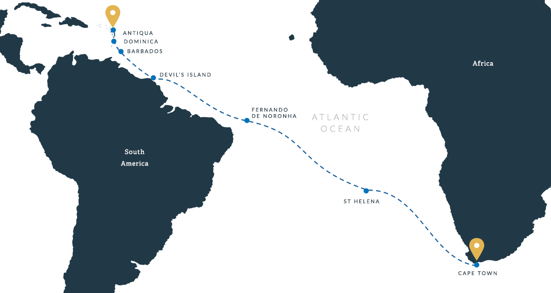 Just as you start to grow familiar with the rugged beauty of the Cape of Good Hope, it’s time to embark on your next great challenge—crossing the Atlantic Ocean. With only a handful of remote stops between you and the Caribbean, the vast, open sea will become your new world, and the sight of land will feel almost foreign. Along the way, you’ll cross the equator, navigate through the calm doldrums, and harness the power of the trade winds, learning to embrace the unique rhythm of life at sea.